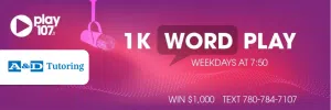 You could win $1000 with the play107 1K Word Play! Listen every weekday morning for a chance to go head-to-head in a game of word association. For every word you match with, score $25. Get all 5 right and win $1000!